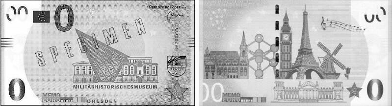 In 2018 zijn er tijdens de souvenirbeurs in Amsterdam (locatie Passenger Terminal) diverse memoeuro biljetten uitgedeeld aan bezoekers. Deze biljetten waren niet voorzien van een serienummer maar waren aan de voorzijde voorzien van een rode stempel met specimen. De memoeuro biljetten in grijs = manco en zoek ik nog